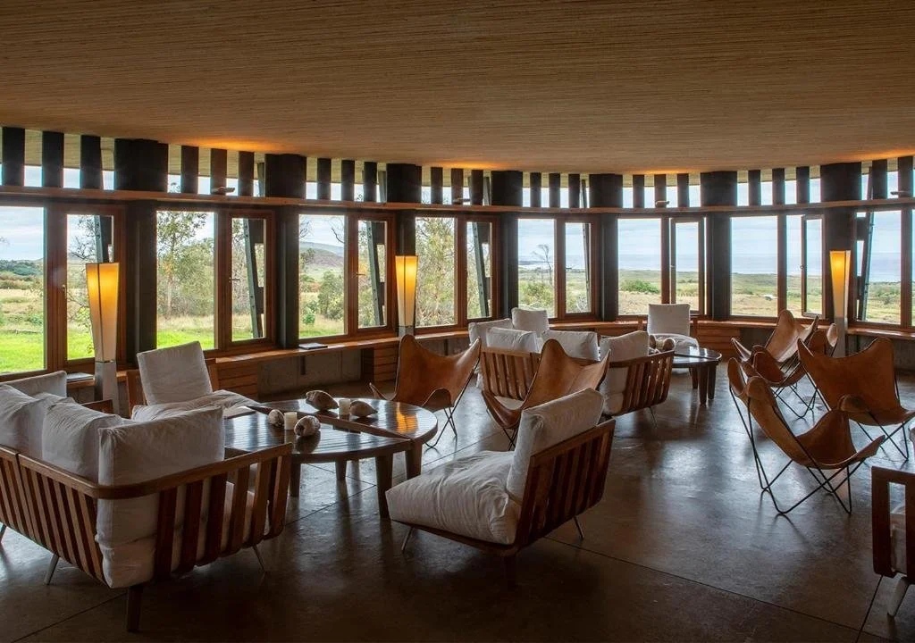 整個度假村所有客房與主要空間都是一層樓(沒有高樓式設計),房間分散在大片土地上,以低密度的方式建築。保留視野(幾乎每間房都能看到海景或綠地)增加隱私感。與復活節島低矮、自然的地景相融合,不突兀。